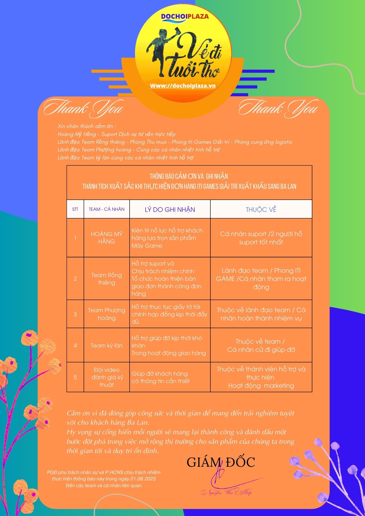 THÀNH TÍCH XUẤT SẮC KHI THỰC HIỆN ĐƠN HÀNG ITI GAMES GIẢI TRÍ