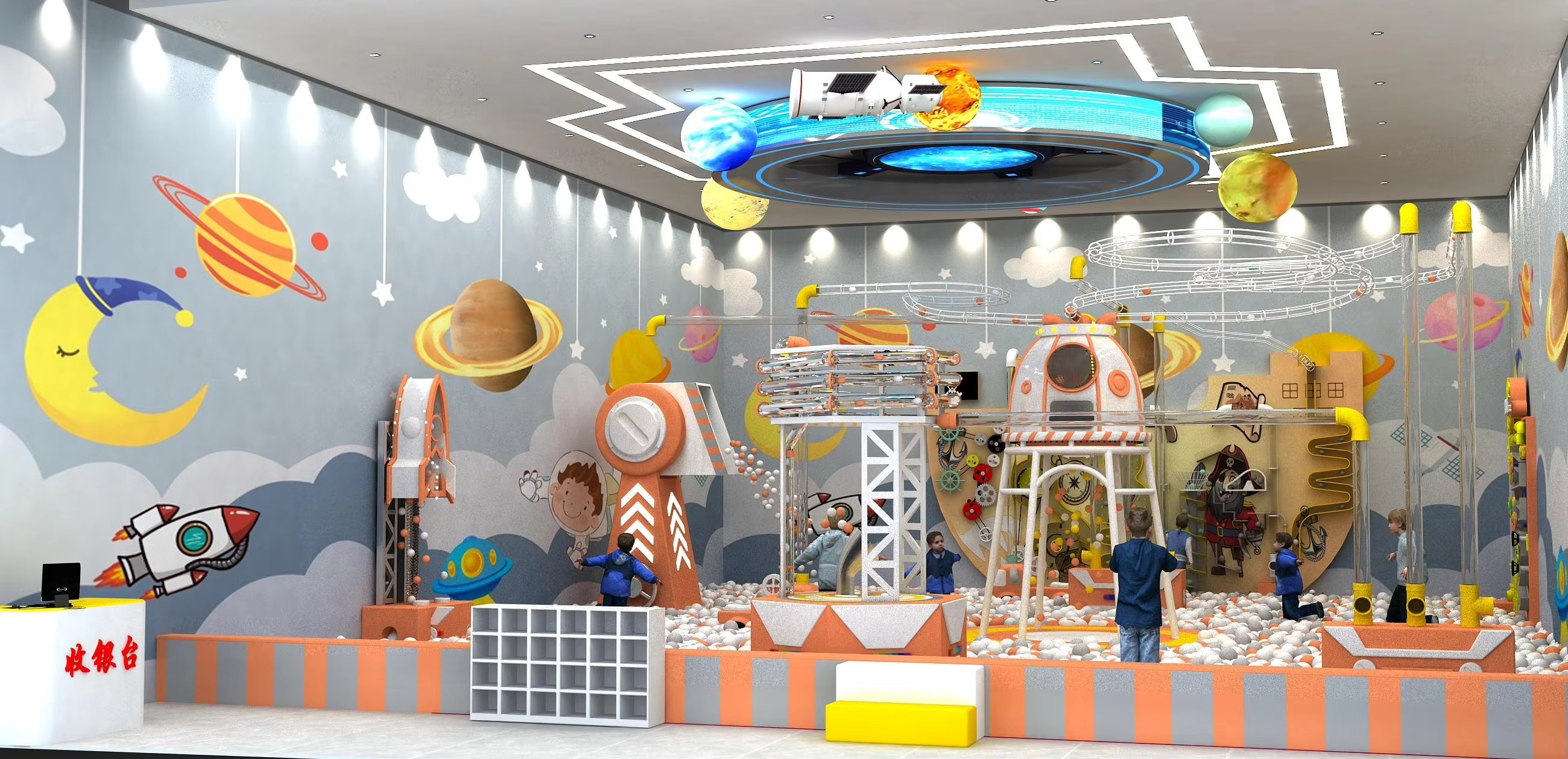 - Phù hợp với nhiều không gian: nhà bóng, khu vui chơi trong nhà, trung tâm thương mại hoặc trường học.