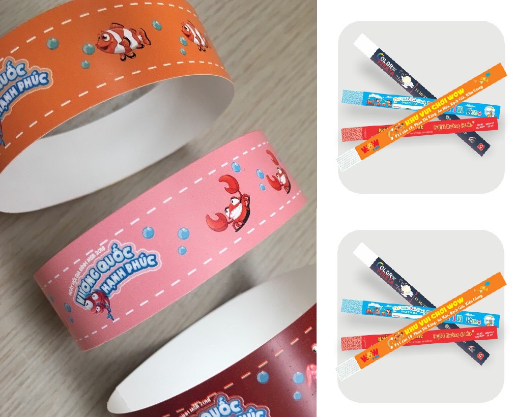 - Các vòng tay có thể thiết kế theo thương hiệu riêng của khu vui chơi với logo, màu sắc nổi bật. Điều này không chỉ tăng tính nhận diện thương hiệu mà còn tạo cơ hội quảng bá khi khách hàng mang vòng tay ra ngoài.
